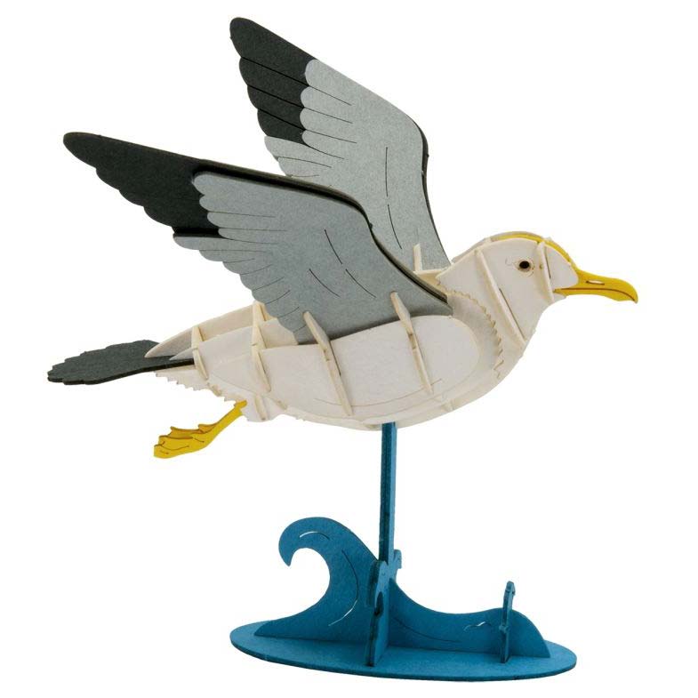 Das 3D Papiermodell "Möwe" ist montiert ca. 11 x11 x 13 cm groß. Der Bausatz besteht aus präzise gelasertem Spezialkarton und wird zusammengesteckt.