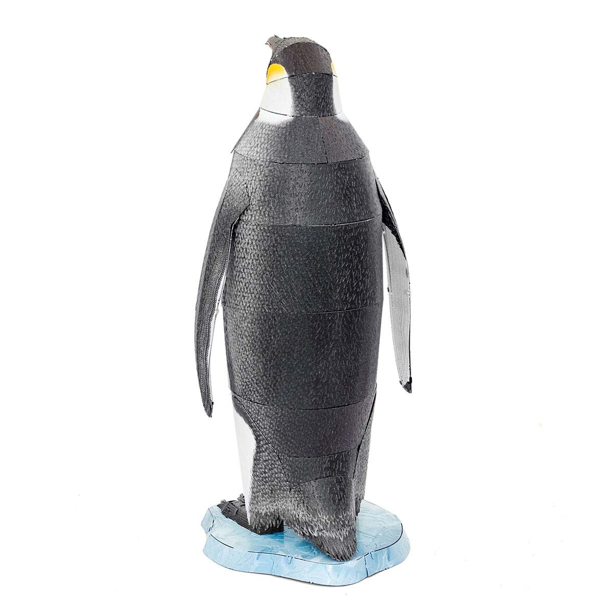Das Modell Emperor Penguin von Metal Earth besteht aus 2,5 Metallbögen (11 x 11 cm) und ist aufgebaut 6,4 × 6,1 × 11,9 cm groß. Der Kaiserpinguin ist die größte und schwerste aller heute lebenden Pinguinarten und ist in der Antarktis endemisch. Er kann eine Größe von mehr als 1,20 m erreichen und über 45 kg wiegen. Es ist die einzige Pinguinart, die während des arktischen Winters brütet. Die Nahrung dieser flugunfähigen Vögel besteht hauptsächlich aus Fischen. Bei der Jagd können sie bis zu etwa 20 Minuten unter Wasser bleiben.