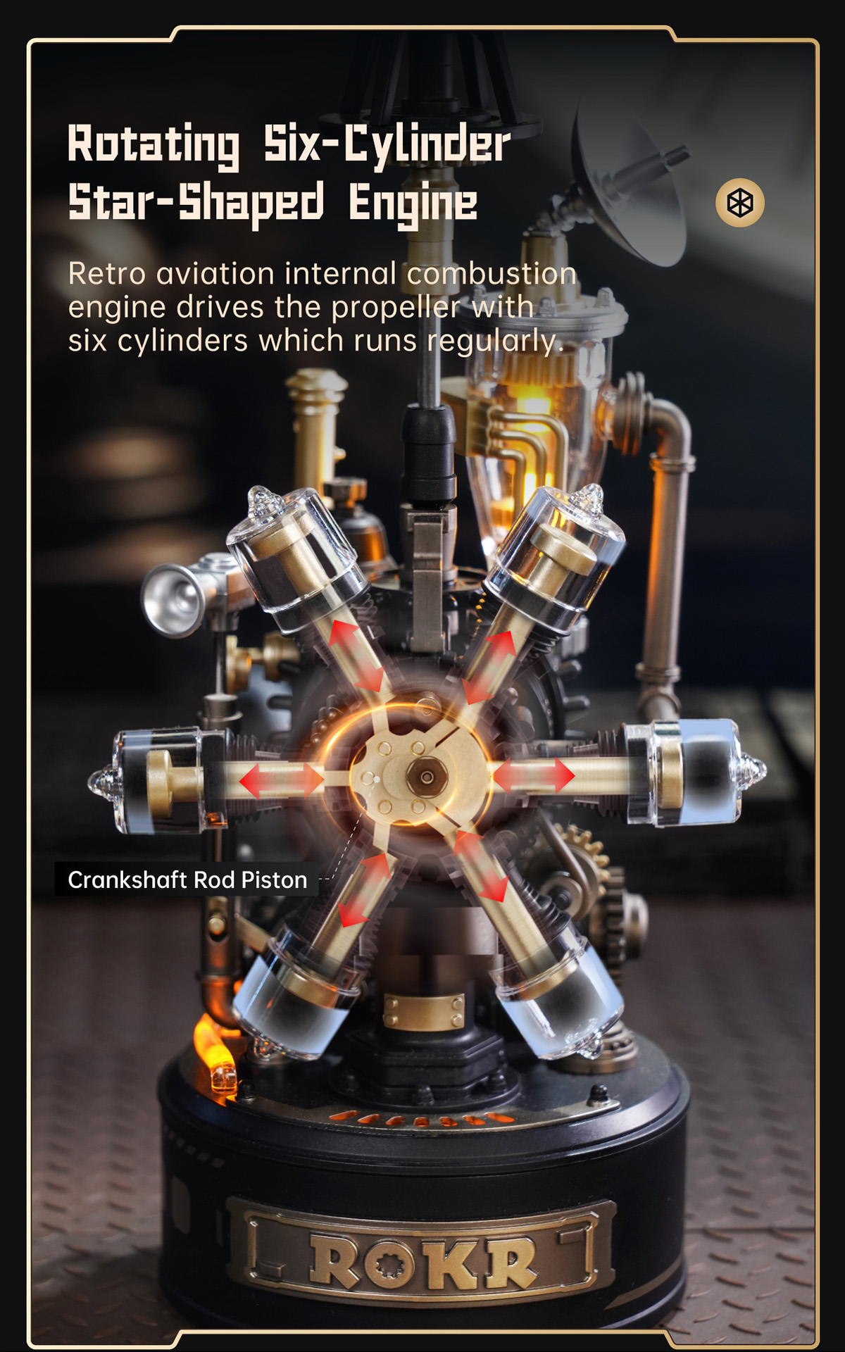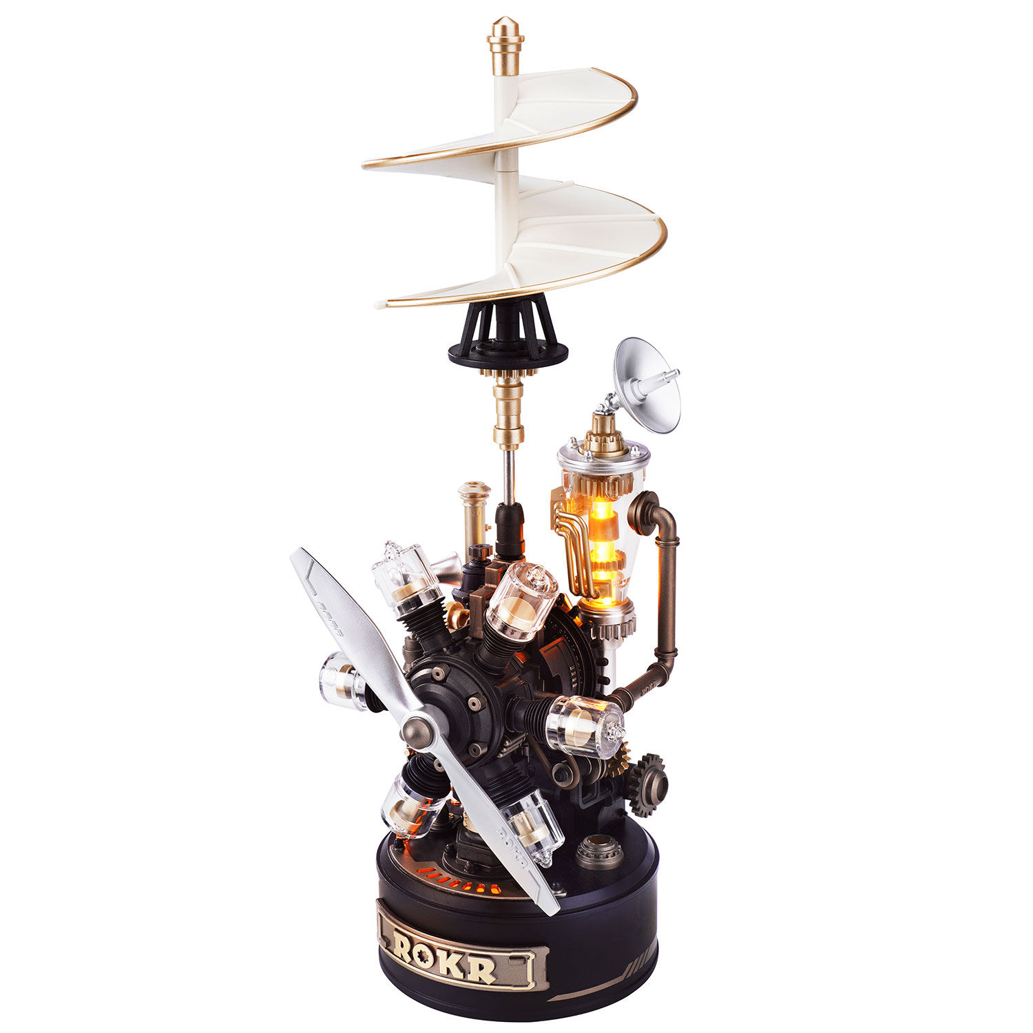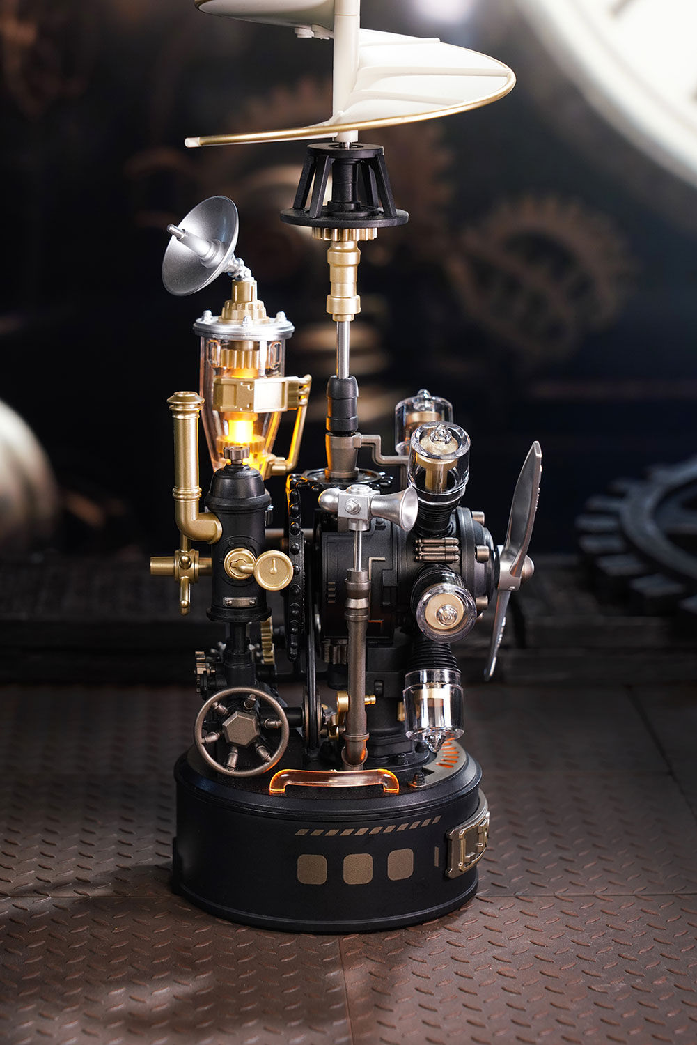 Dieses 3D-Modell ist ein Steampunk-Dekorationsstück der Renaissance, dessen Ofen von einer rot-orangen LED beleuchtet wird und aus dessen Schornstein Dampf aufsteigt. Bauen Sie alle Modelle der Serie Industriestadt und zollen Sie dem menschlichen Erfindungsgeist und der Kreativität Tribut.