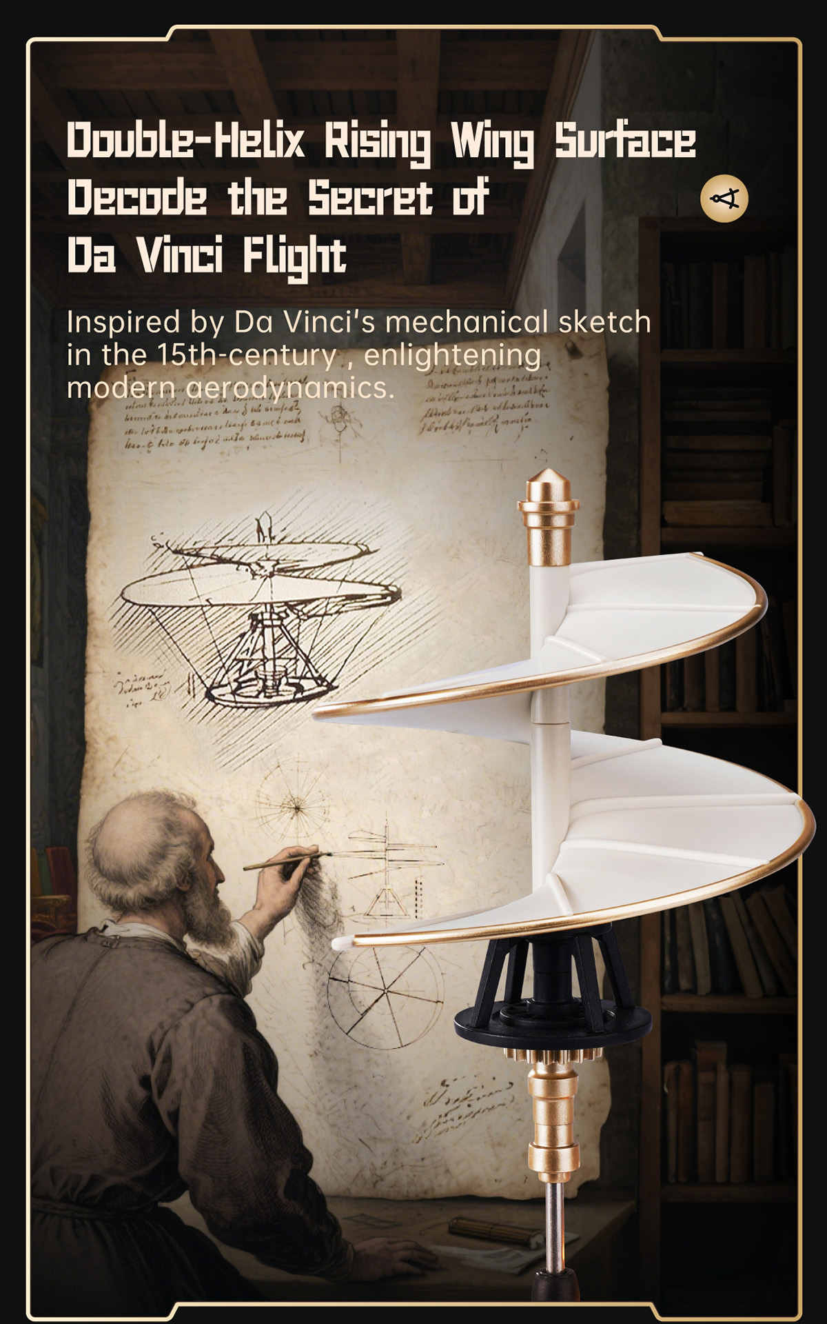 Lassen Sie sich von Leonardo da Vincis Hubschrauber von ROKR inspirieren einem 3D-Bausatz, der auf den Flugideen des Genies aus dem 15. Jahrhundert basiert.