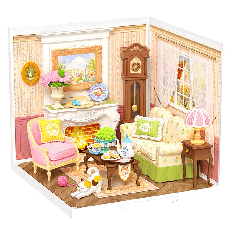 Der Bausatz "Holiday Tea Time" aus der DIY Super Creator Serie von Rolife ist für sich ein einzelner Raum, kann aber zusammen mit anderen Super Creator Modellen zusammengesetzt werden. So können die Modelle nebeneinander und übereinander gesetzt werden. Als Erweiterung gibt es auch noch Seitenwände und ein Dach. Das Modell ist aufgebaut ca. 16,3 x 16,3 x 15,2 cm groß. Anders als die bekannten Rolife Miniature Houses bestehen diese Bausätze vor allem aus Plastik und sind deutlich leichter zusammenzubauen.