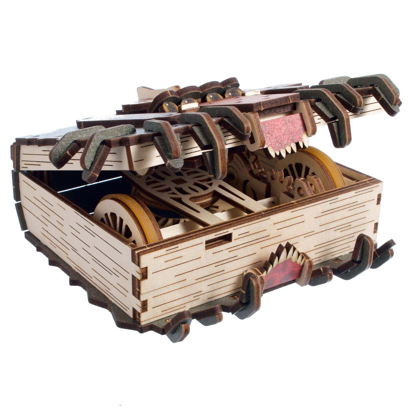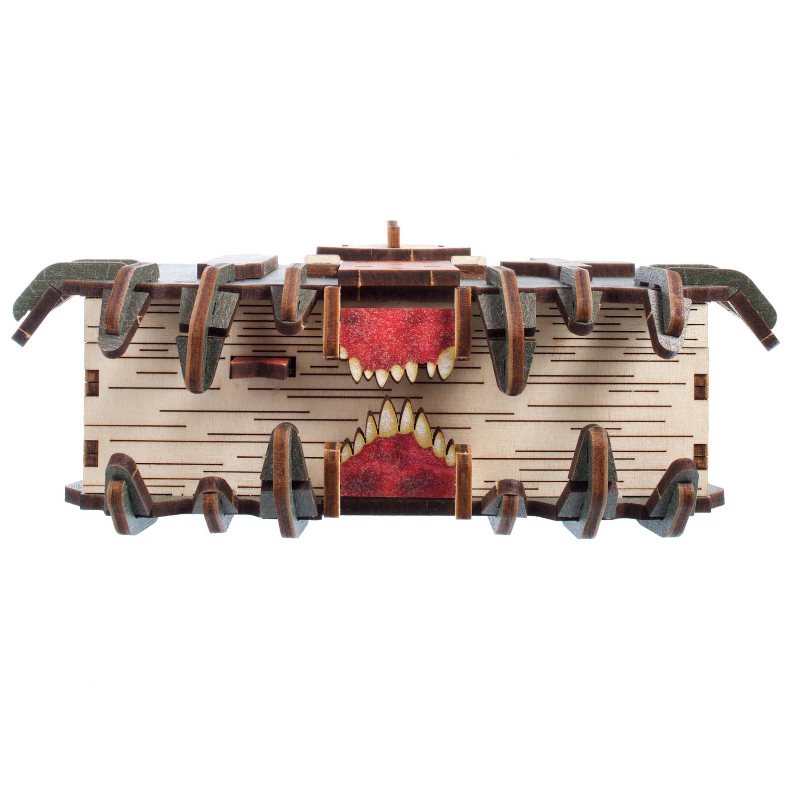 Das 3D-Holzmodell Monsterbuch der Monster aus der Harry Potter Serie von Ugears verbindet verspieltes Design mit cleverer Ingenieurskunst. Das Modell verfügt über einen Riemenmechanismus, der das Buch sicher verschließt. Ziehe die Schnur auf der Rückseite bis zur maximalen Spannung auf, stelle das Modell auf eine ebene Fläche und löse den Riemen schon rollt es nach vorne, während sich der Buchdeckel wie die schnappenden Kiefer des Originals auf und zu klappt. Für den besonderen Wow-Effekt öffnen sich die Augen kurz vor der vollständigen Freigabe und lassen den legendären Moment lebendig werden, in dem das Buch im Film zum Leben erwacht. Dieses sammelwürdige mechanische Modell ist zugleich ein spannendes Bauprojekt und ein beeindruckendes Ausstellungsstück für jeden Harry-Potter-Fan.