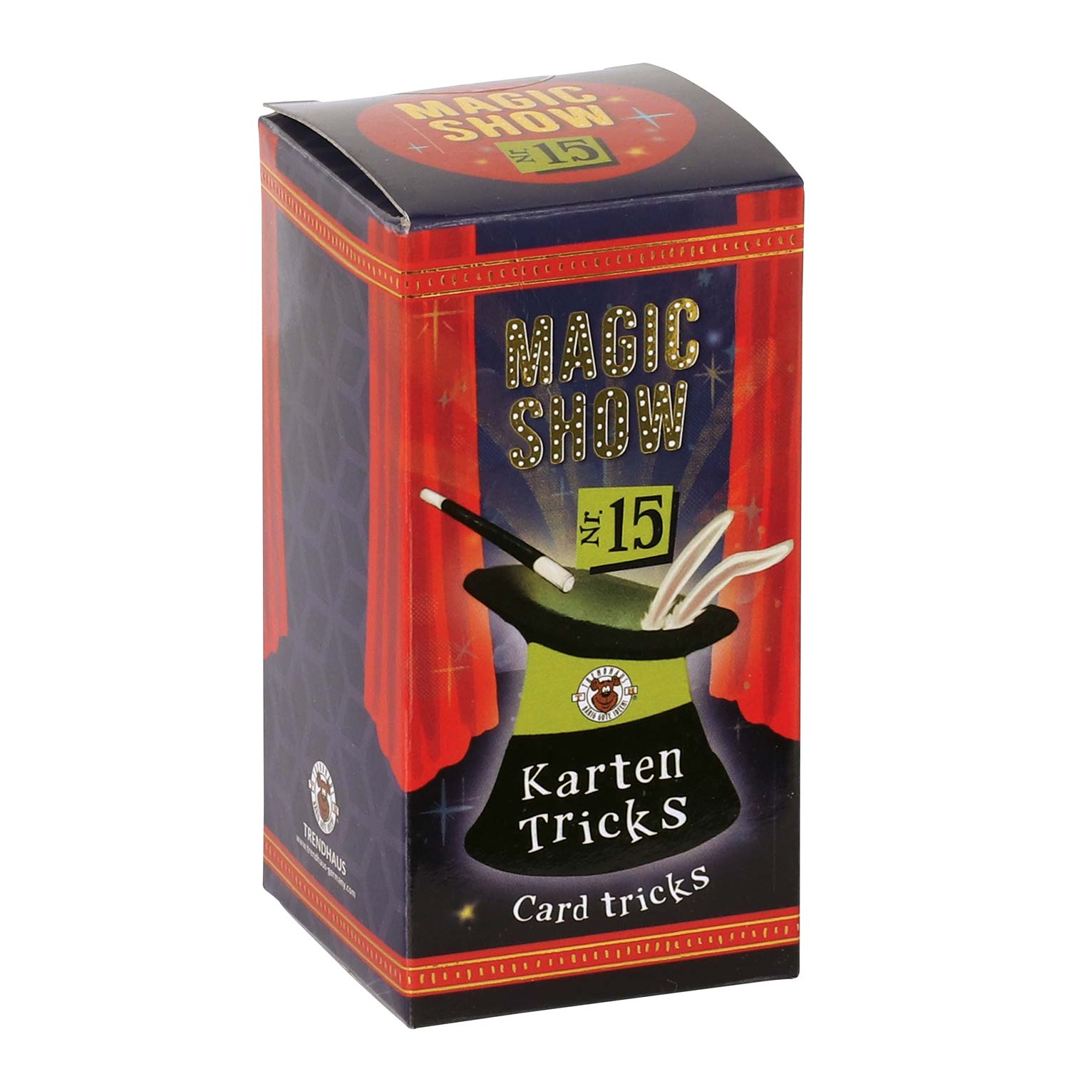 Fünf spannende Kartentrick-Sets! Versetze alle deine Freunde in Staunen, indem du viele verschiedene Kartentricks beherrscht. Du kannst Karten verwandeln, sie verschwinden oder wieder auftauchen lassen. Die leicht verständliche, bebilderte Anleitung zeigt dir, worauf es bei dieser verblüffenden Illusion ankommt. Zusätzlich erhältst du 5 Tickets, mit denen du zu deiner eigenen MAGIC SHOW einladen kannst.