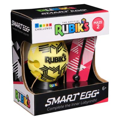 Rubik's Smart Egg 2 in Gelb. Die Challenge: Der Stab wird ins obere Loch des Eis gesteckt und muss dann vorsichtig, Schritt für Schritt durch das im Ei verborgene Labyrinth geführt werden - bis er aus dem unteren Loch wieder herausgezogen werden kann. Geduldsspiel für Einsteiger: Es trainiert Konzentration und Geschicklichkeit und ist für Groß und Klein ab 6 Jahren geeignet. Der beiliegende Ständer für Ei und Stab ist praktisch zum Aufräumen und Platzieren auf dem Regal. Rubik's Smart Egg - die Geduldsspiel-Challenge für Einsteiger und für zwischendurch.