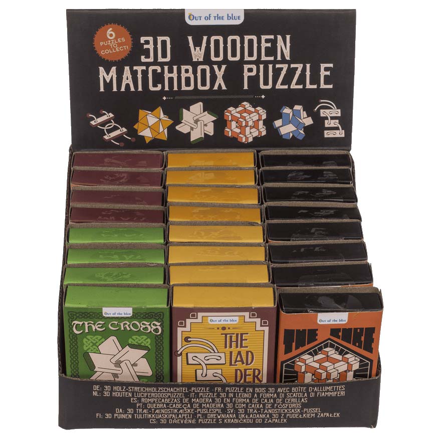 Das Holzpuzzle "Kreuz" ist ein klassisches Holzpuzzle, bei dem man die Puzzleteile auseinandernehmen und wieder zusammensetzen muss. Das Puzzle passt in eine Streichholzschachtel.