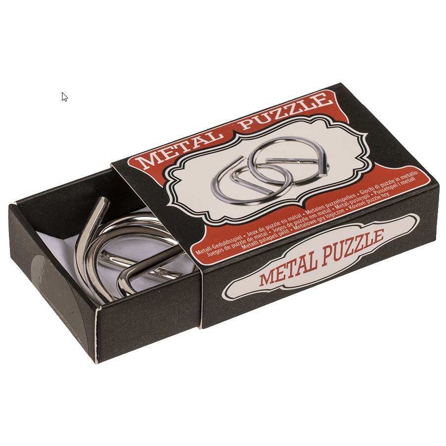 Das Metallpuzzle 3 ist ein klassisches Metallpuzzle, bei dem man die Puzzleteile auseinandernehmen und wieder zusammensetzen muss. Das Puzzle passt in eine Streichholzschachtel.