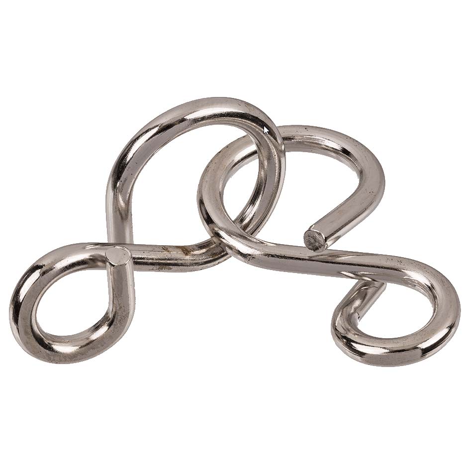Das Metallpuzzle 9 ist ein klassisches Metallpuzzle, bei dem man die Puzzleteile auseinandernehmen und wieder zusammensetzen muss. Das Puzzle passt in eine Streichholzschachtel.