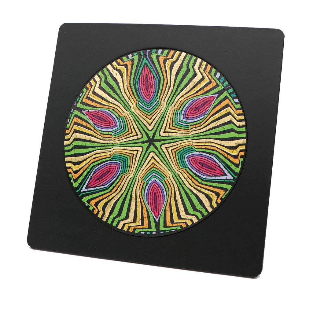 Das Puzzle Double "Hippie": Da kann man sich schon mal die Haare raufen. Die Motive auf Vorder- und Rückseite sind so ähnlich gestaltet, dass man nie so genau weiß: wo ist oben, wo ist unten. Ein herrlich kniffliger Puzzlespaß. Ein passendes Puzzletablet (23,5 x 23,5 cm) aus Holz ist in der Box enthalten.