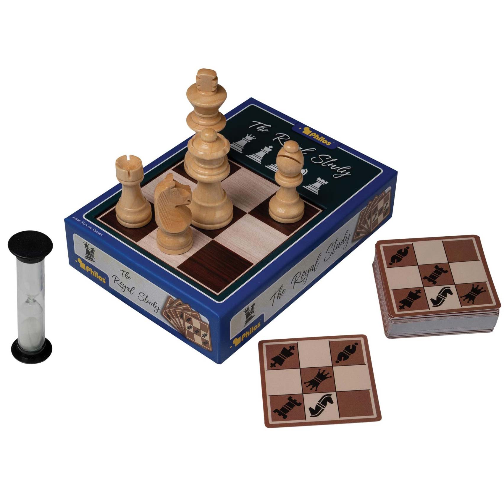 In The Royal Study" treten die Spieler gegeneinander an, um kleine Schachrätsel zu lösen, indem sie die minimale Anzahl an benötigten Zügen schätzen. Wer richtig schätzt und korrekt ausführt, erhält einen Punkt. Der erste Spieler mit sechs Punkten gewinnt!